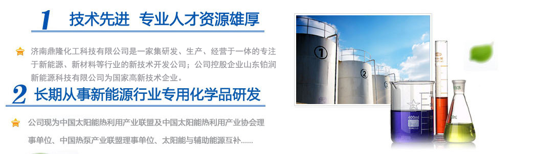 是一家集研發、生產、經營于一體的專注于新能源、新材料等行業的新技術開發公司;公司控股企業山東鉑潤新能源科技有限公司為國家高新技術企業。擁有雄厚的科研實力和專業銷售隊伍以及多名從事化學化工專業的高素質人員,其中博士生導師1人,碩士研究生3人。公司現為中國太陽能熱利用產業聯盟及中國太陽能熱利用產業協會理事單位、中國熱泵產業聯盟理事單位、山東清潔能源供暖產業聯盟理事單位、太陽能與輔助能源互補供熱/制冷工程專業委員會會員單位。公司專注于綠色科技,專業化研發環境友好型化工產品,與眾多高校和國內外多家著名化學品公司保持戰略合作關系。公司擁有“載能”和“澤能”...更多
